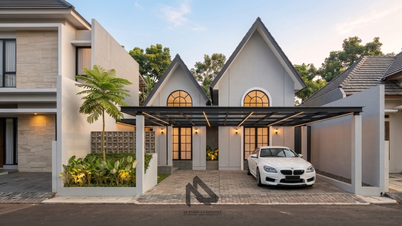 Berbeda dengan rumah klasik tradisional yang penuh detail, versi modern menggunakan ornamen yang lebih minimal namun tetap berkelas.