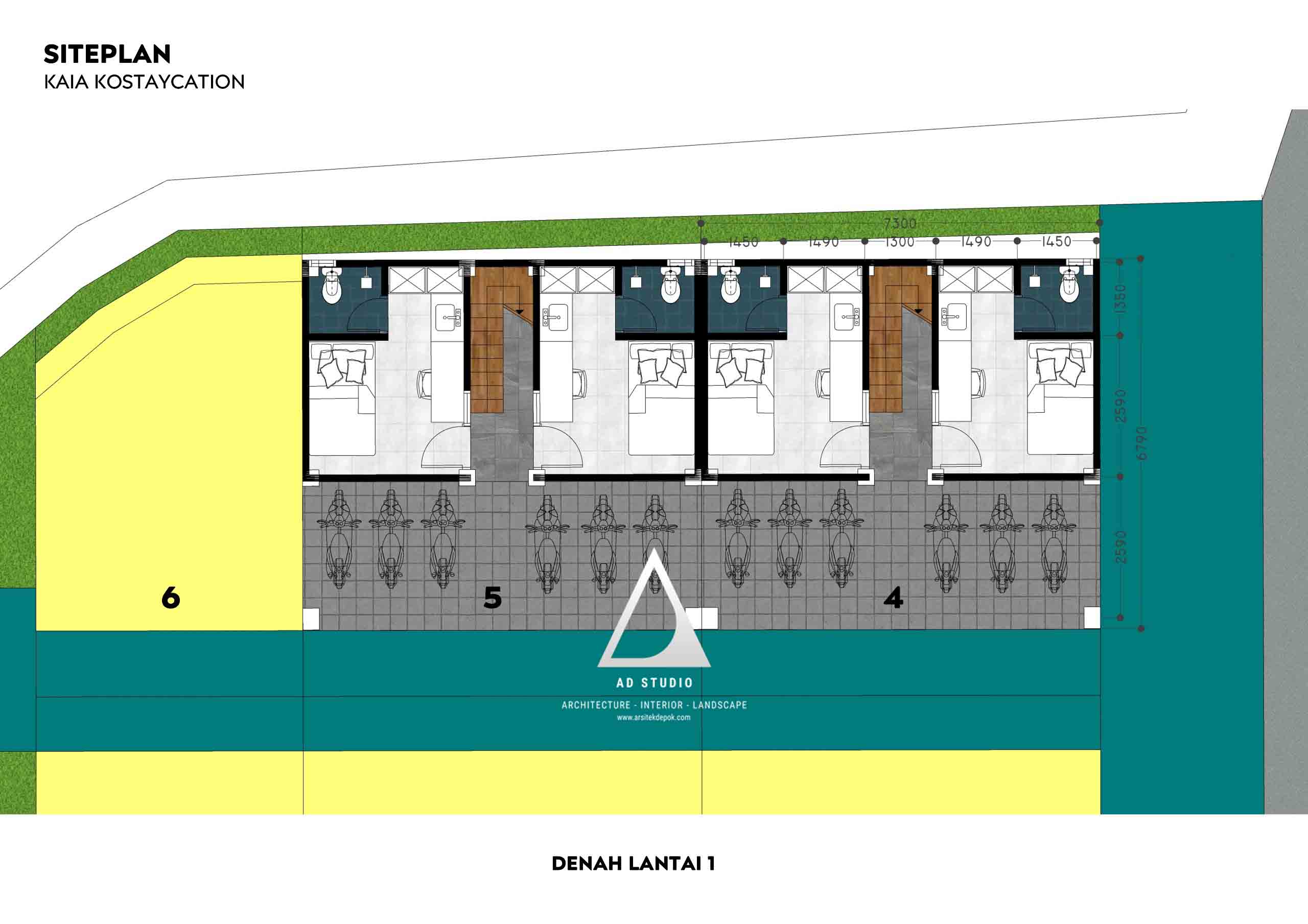 - Denah Kosan 1 Lantai dengan 6 Kamar