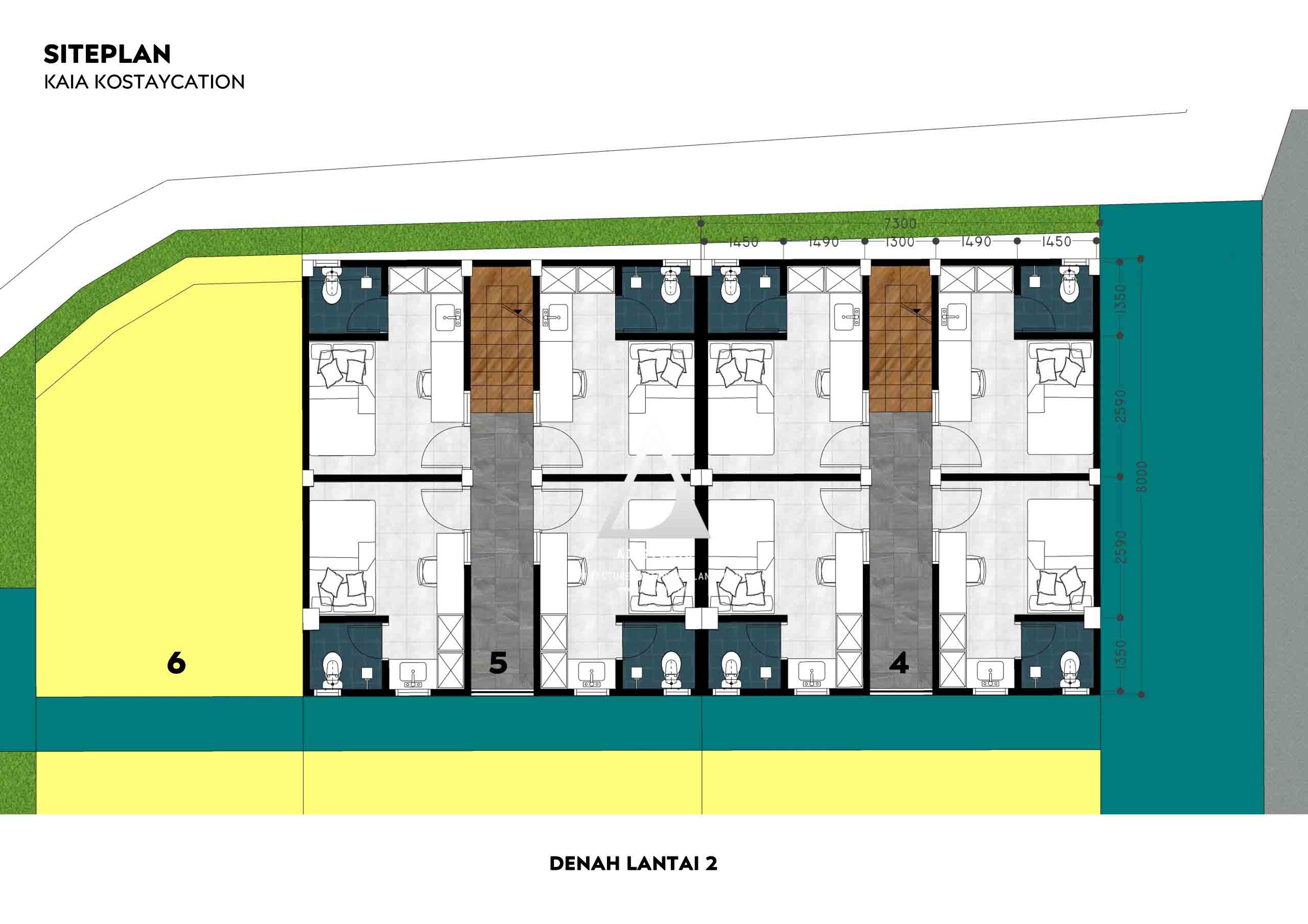 Secara keseluruhan, denah kosan dirancang dengan prinsip keseimbangan antara kenyamanan penghuni dan efisiensi lahan. Tata letaknya dioptimalkan agar mudah dalam pengelolaan dan pemeliharaan, serta tetap menarik bagi calon penyewa yang mencari hunian praktis dan fungsional.