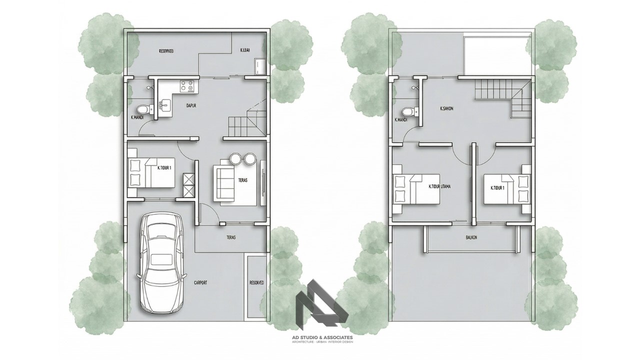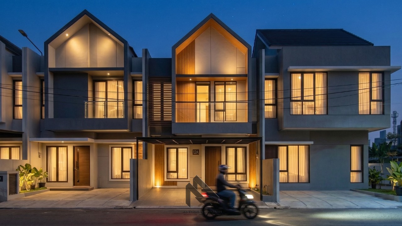 Digunakan untuk memaksimalkan lahan sempit. Lantai pertama biasanya untuk area publik seperti ruang tamu dan dapur, sedangkan lantai kedua untuk kamar tidur.