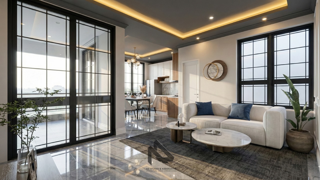 Output: Desain interior lengkap (3D, Gambar Kerja, Detail Furniture, MEP, dan Spesifikasi Material).