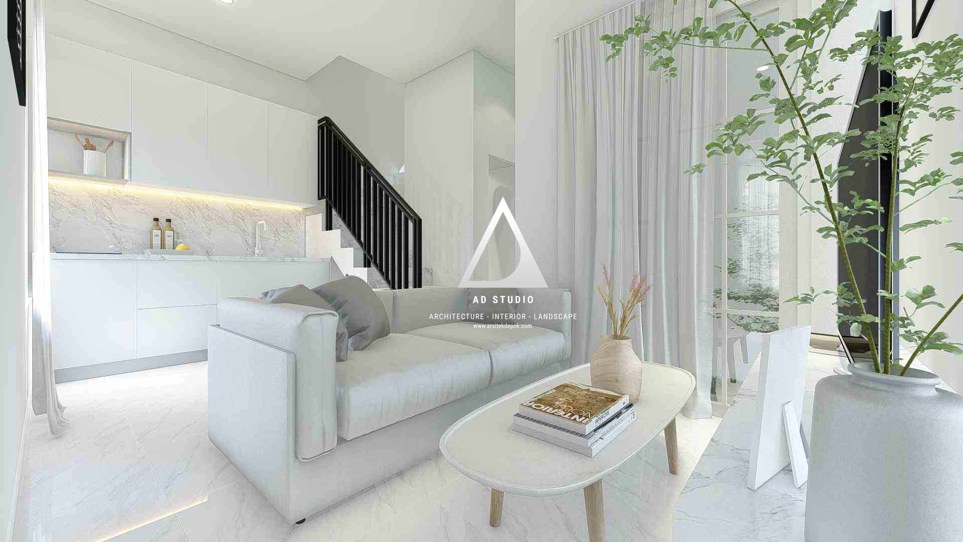 Desain ruang tamu dalam rumah tipe ini biasanya mengusung konsep minimalis, di mana furnitur yang digunakan memiliki ukuran yang compact dan multifungsi agar tidak memakan banyak tempat. Sofa kecil, kursi tanpa sandaran tangan, atau bahkan bangku panjang sering menjadi pilihan untuk menjaga kesan luas. Meja kopi yang digunakan cenderung berukuran kecil atau memiliki desain multifungsi dengan ruang penyimpanan di bawahnya.