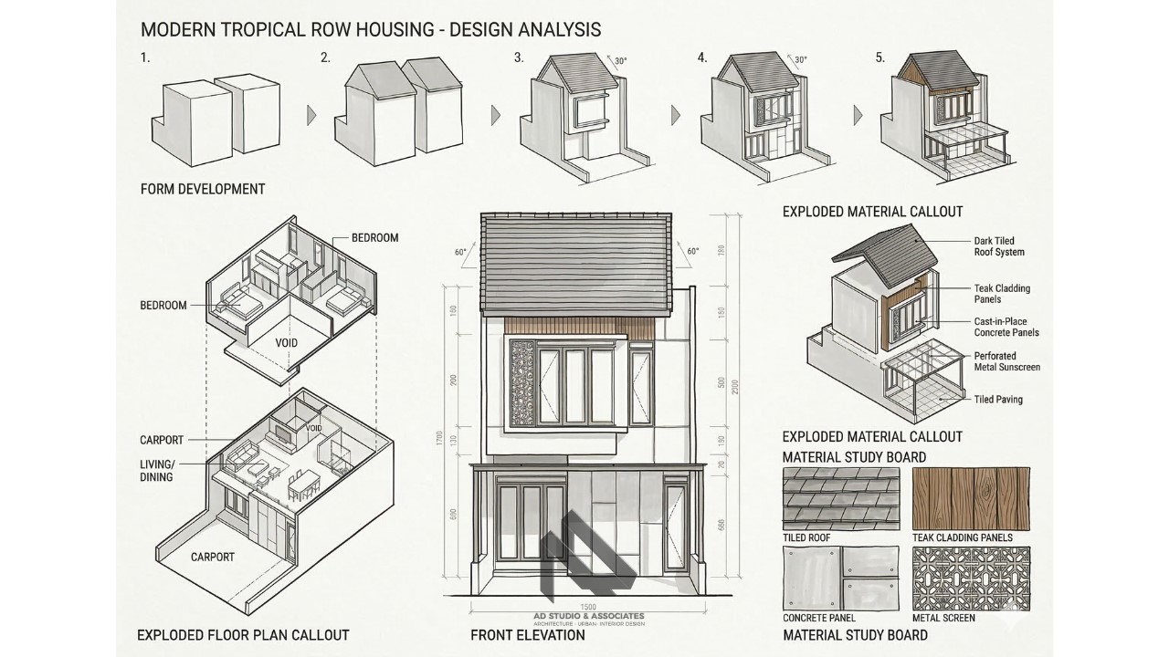 Konsep tropis menekankan pada sirkulasi udara yang baik, pencahayaan alami, dan perlindungan terhadap panas serta hujan. Sementara itu, desain rumah modern mengedepankan bentuk sederhana, garis tegas, dan minim ornamen.