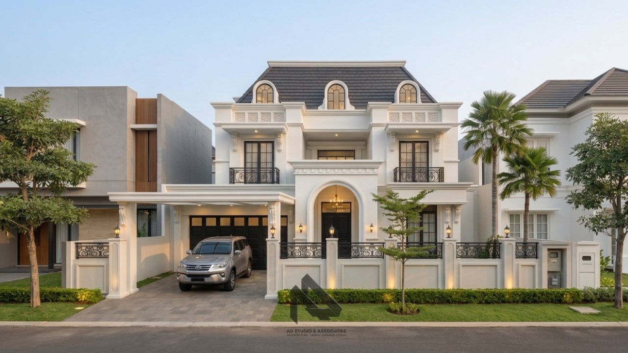 Desain klasik memberikan kesan megah dan timeless. Biasanya menggunakan: