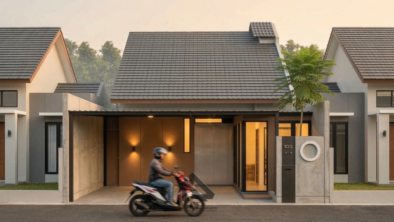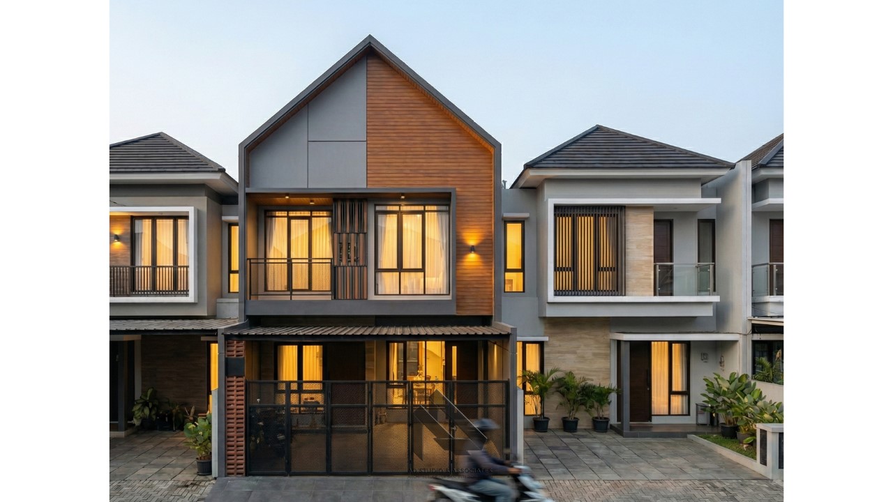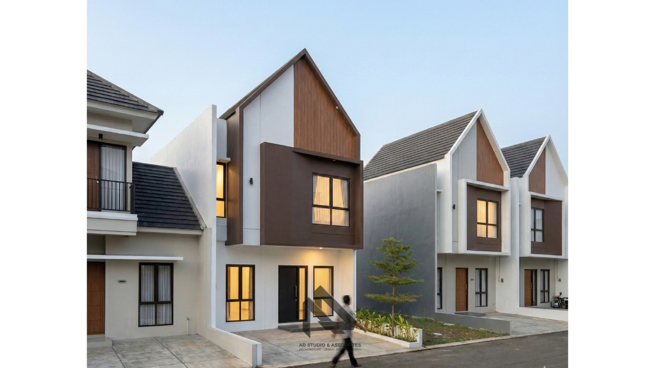 Fasad rumah dirancang dengan komposisi warna yang seimbang. Biasanya menggunakan 2–3 warna utama untuk menciptakan kontras yang elegan.