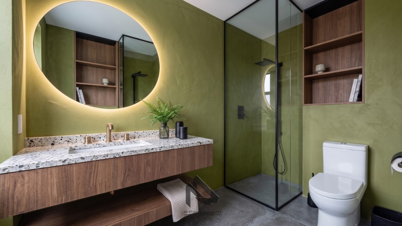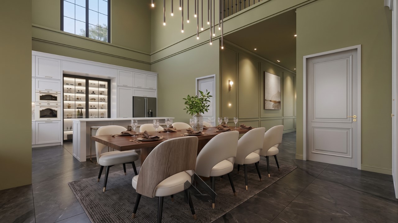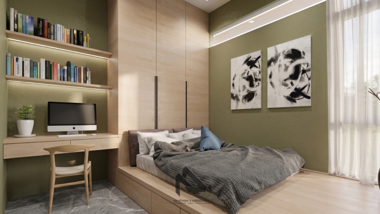 Arsitek memahami area mana yang cocok menggunakan warna olive agar tampil maksimal.